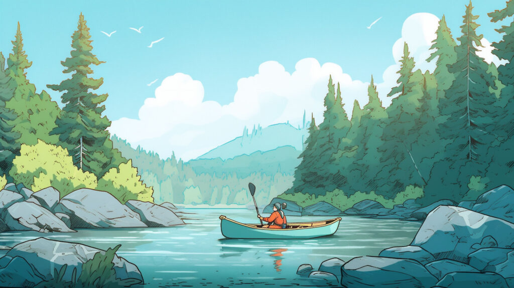 天秤座10度 危険な流れを抜け安全な場所に辿り着いたカヌー