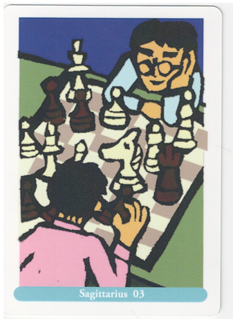 射手座3度「チェスをする2人の男」の度数は状況を判断する力、先を読む力、作戦を練る度数ですので、実際に体当たりで自分で動いていくのはまた別の度数になります。