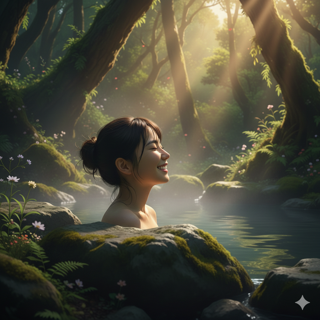 しかも、密かに入浴していますから、誰かに見せるために取り繕う必要もなく、ありのままの自分をかみしめ、楽しんでいるような状態でしょう。